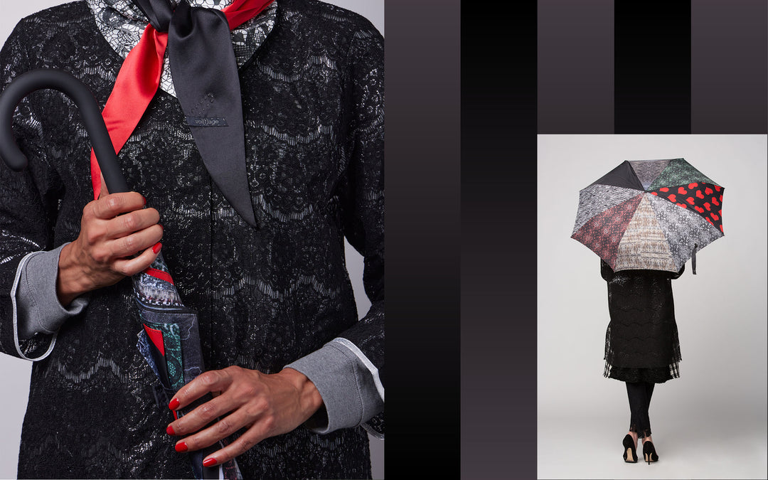 This ultra-light raincoat-in-a-bag, crafted in semi-transparent black lace, doesn’t just keep water out — it keeps your inner vol(t)age in. Made to hold your energy even when the skies fall, and to turn weather into a wearable ritual.