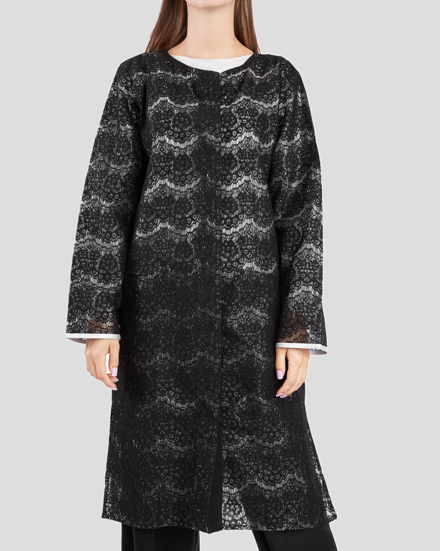 Designed to wear over coats and jackets; the model is 174cm and is wearing a size S.