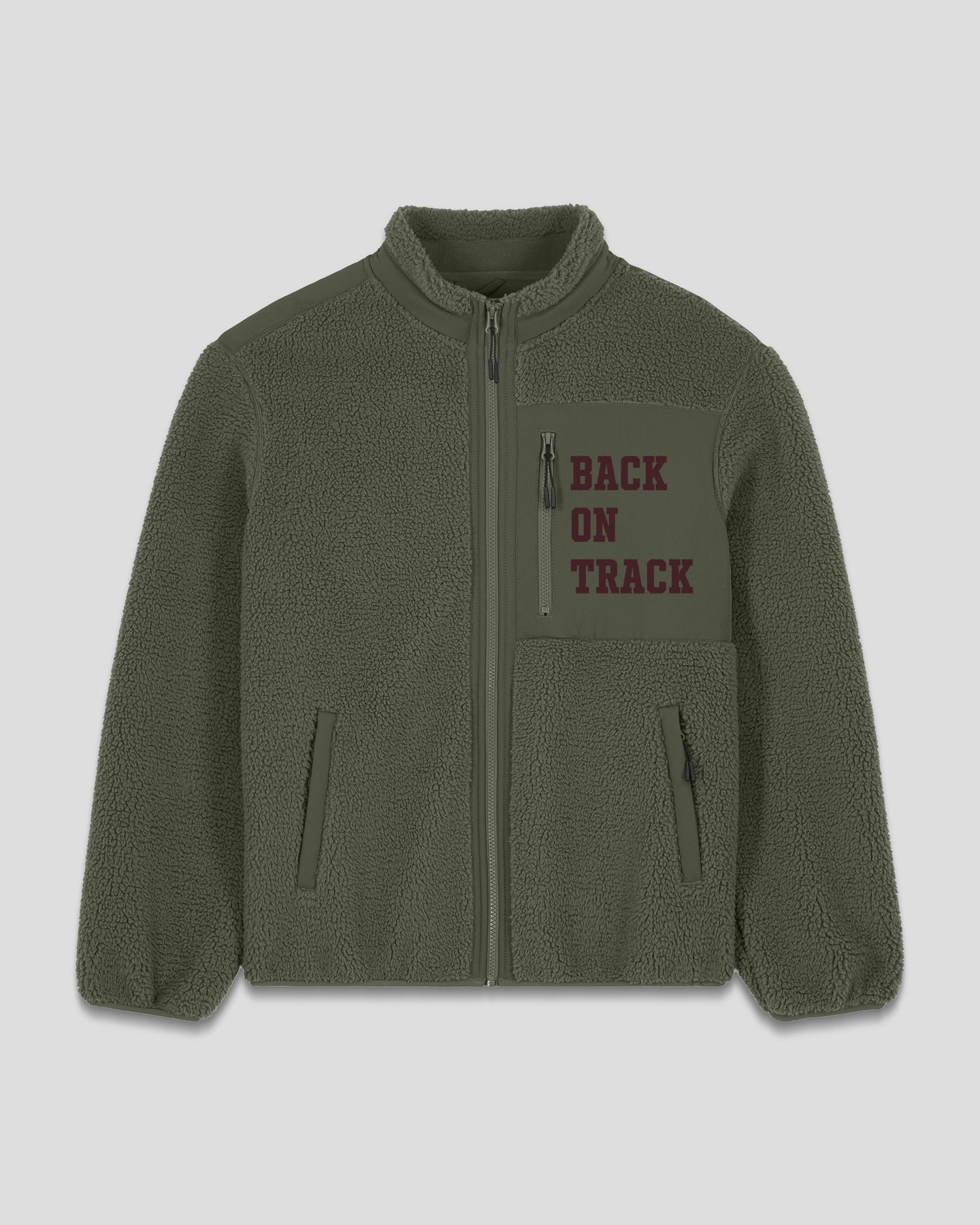 A favourite cold-weather layer is updated with clever statements and a high neck for added protection. Made with soft, high-pile fleece from 100% recycled fabric, the cozy jacket has a relaxed, boxy fit with elastic binding at the sleeve cuffs and bottom hem to hold in warmth.