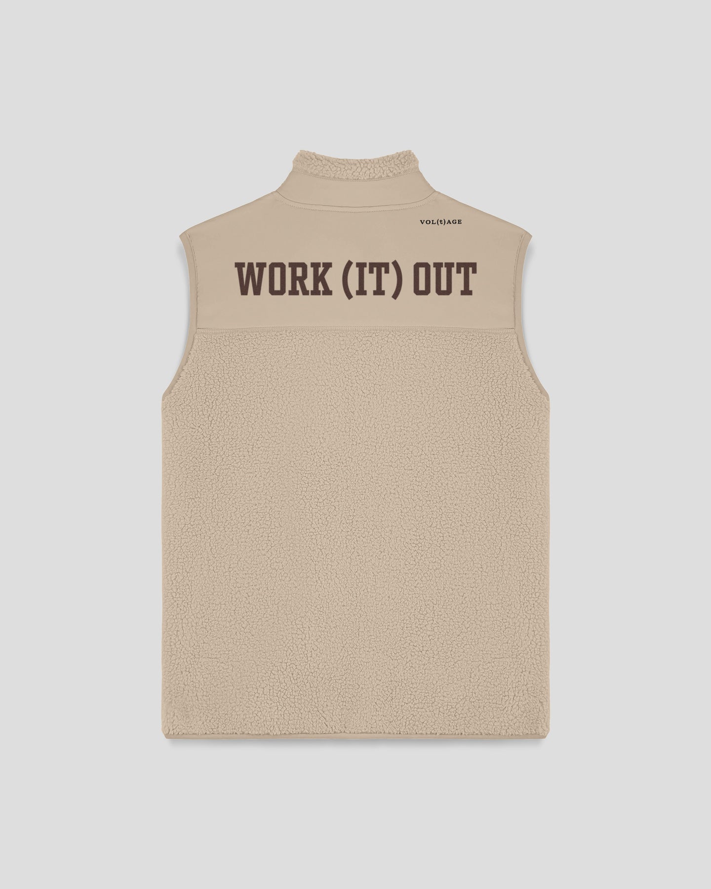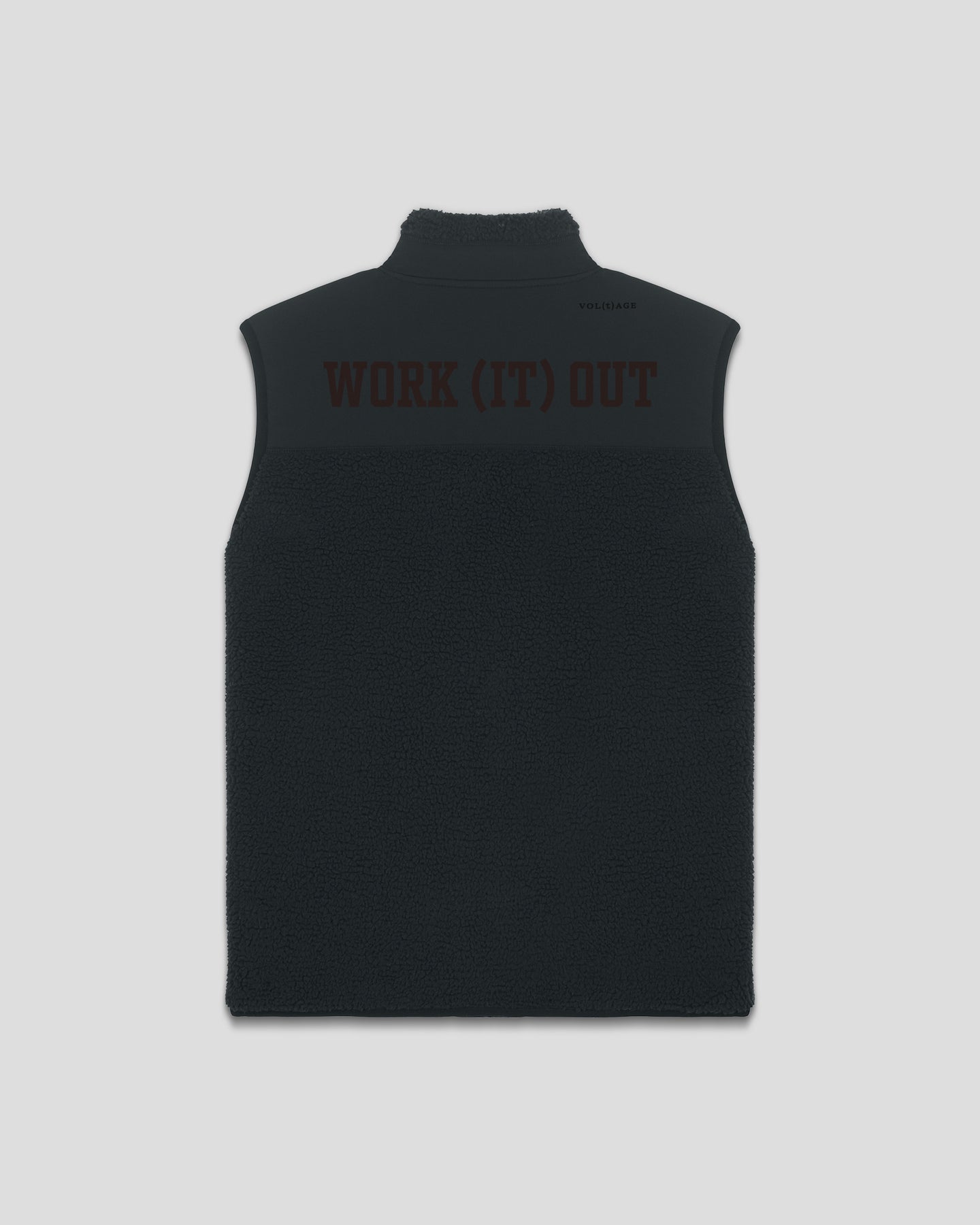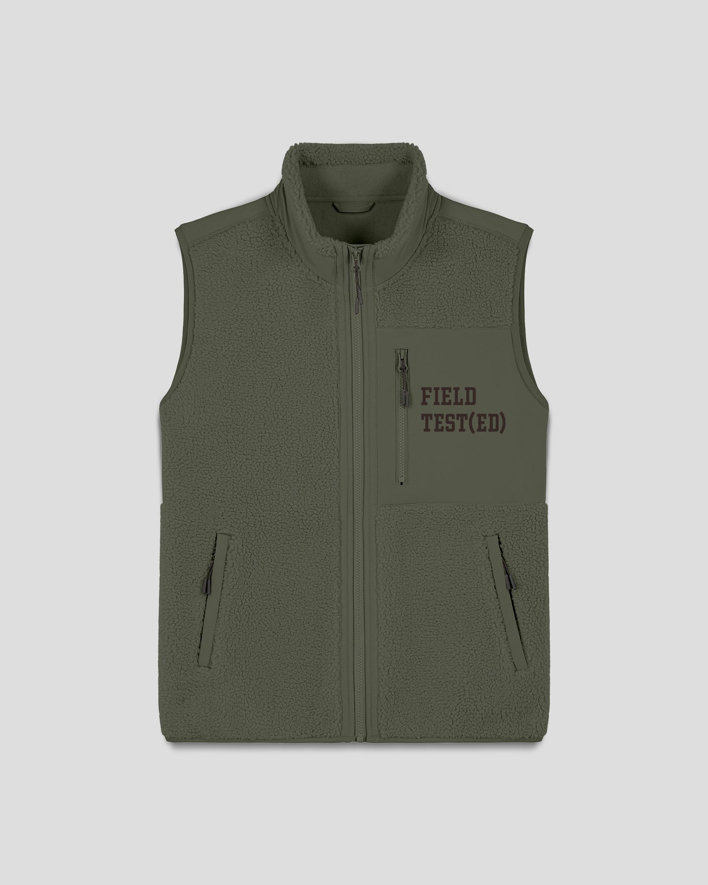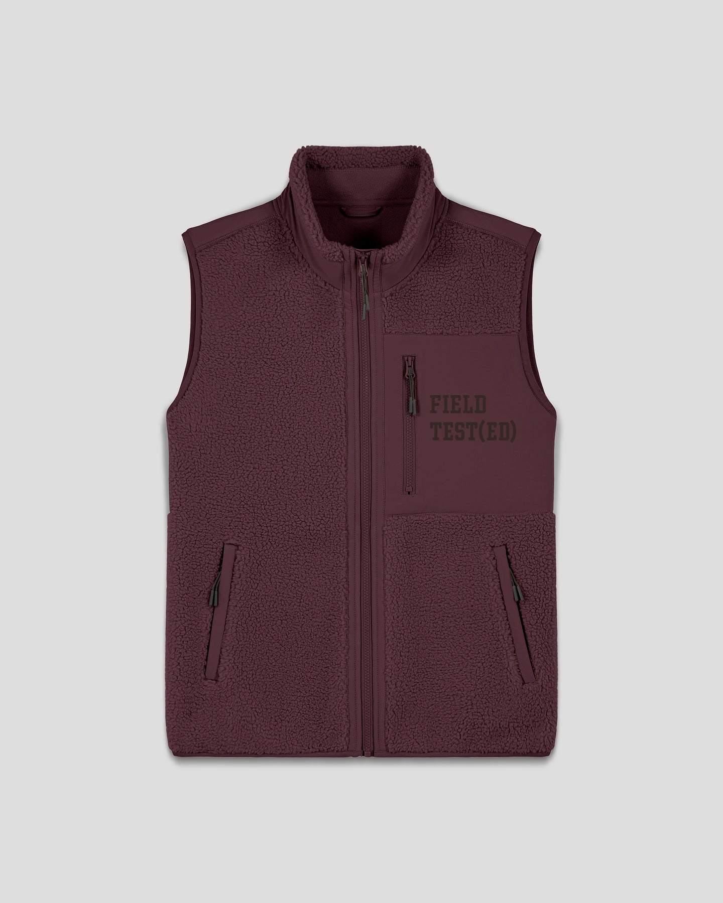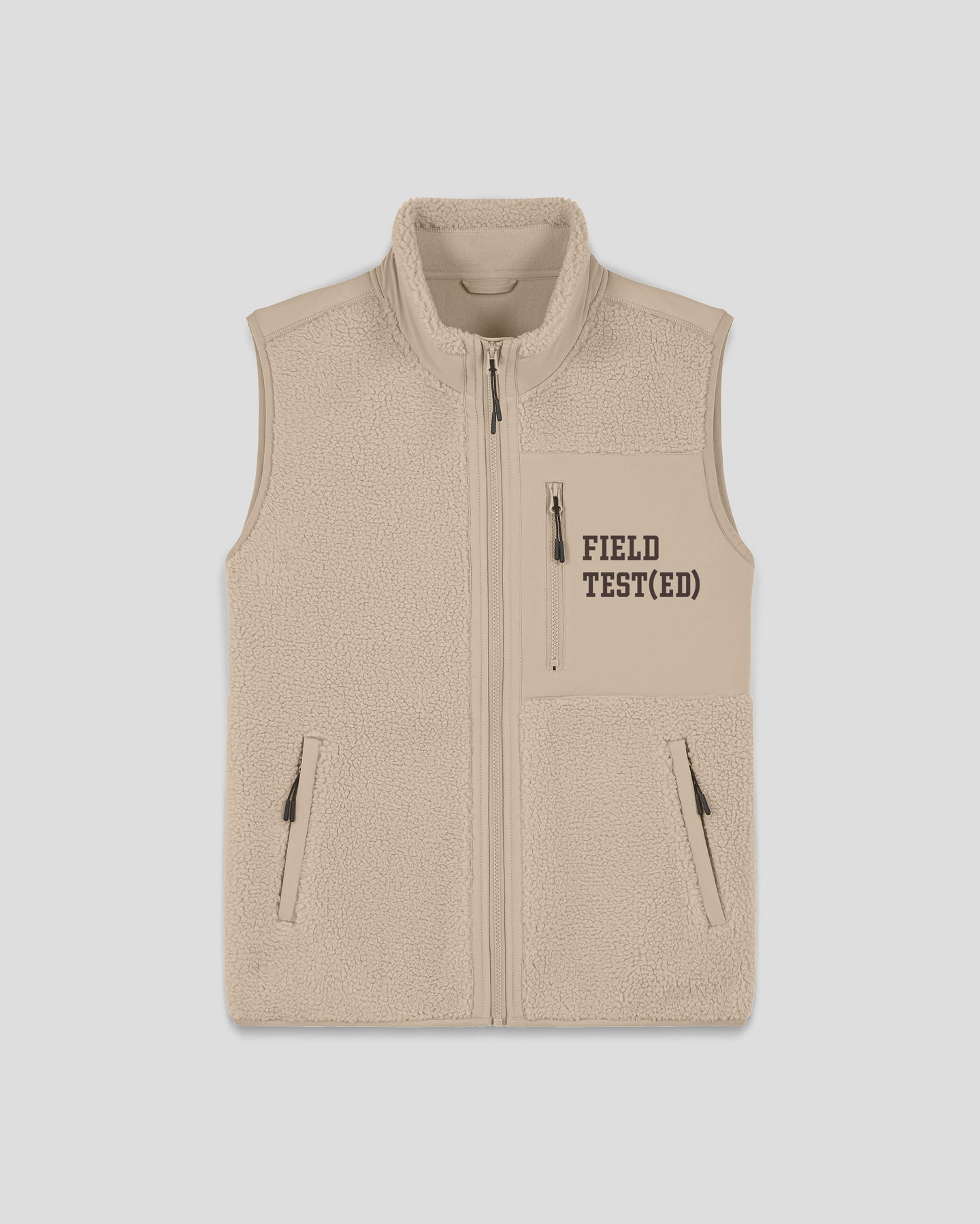 A true statement piece that blends premium style with everyday practicality. Crafted from 100% recycled polyester, it features a plush sherpa finish, sleek softshell details, and a fully bonded fleece lining for long-lasting comfort. With its bold design, versatile styling options options, and functional zip pockets, this unisex vest is built to stand out—on any adventure.