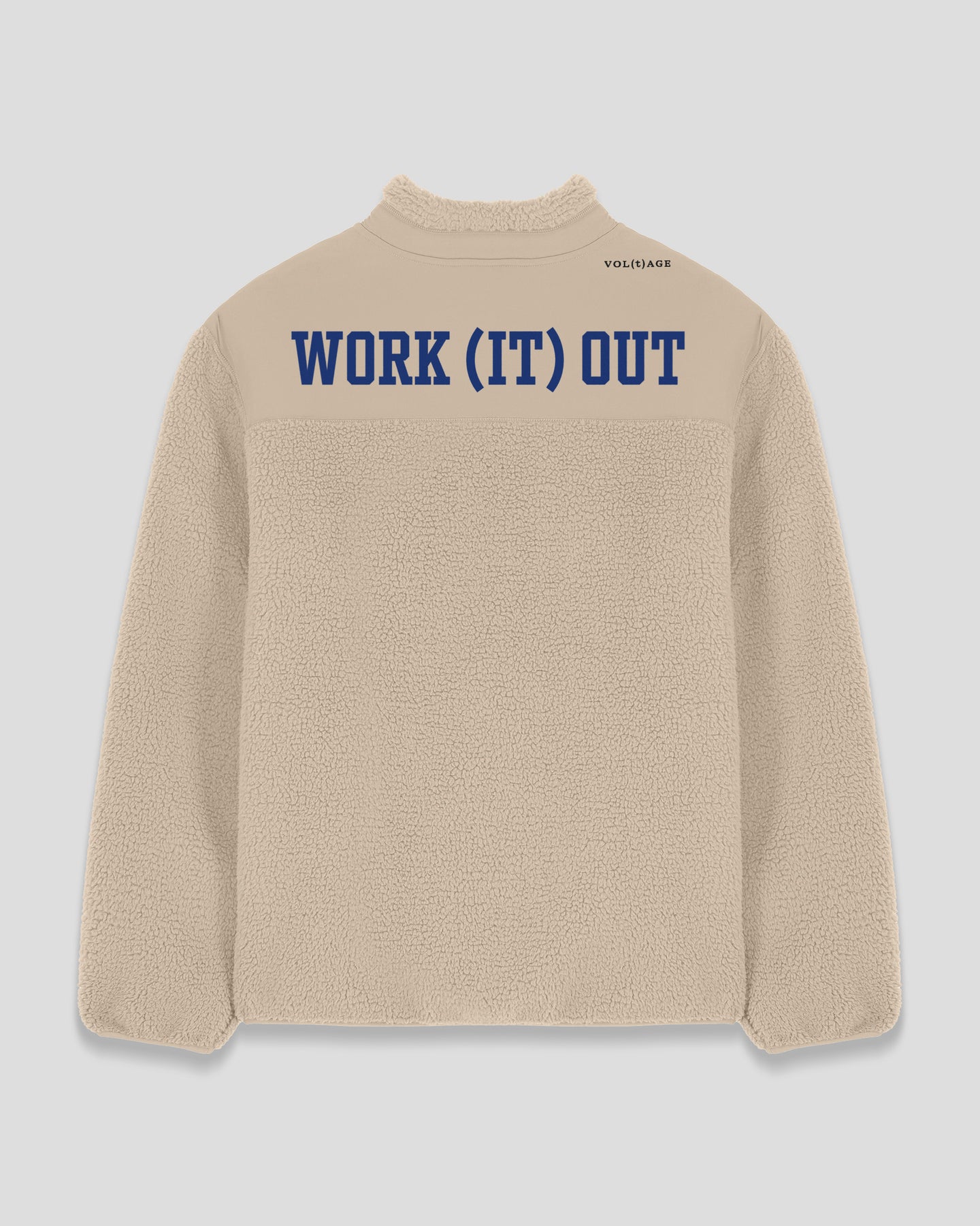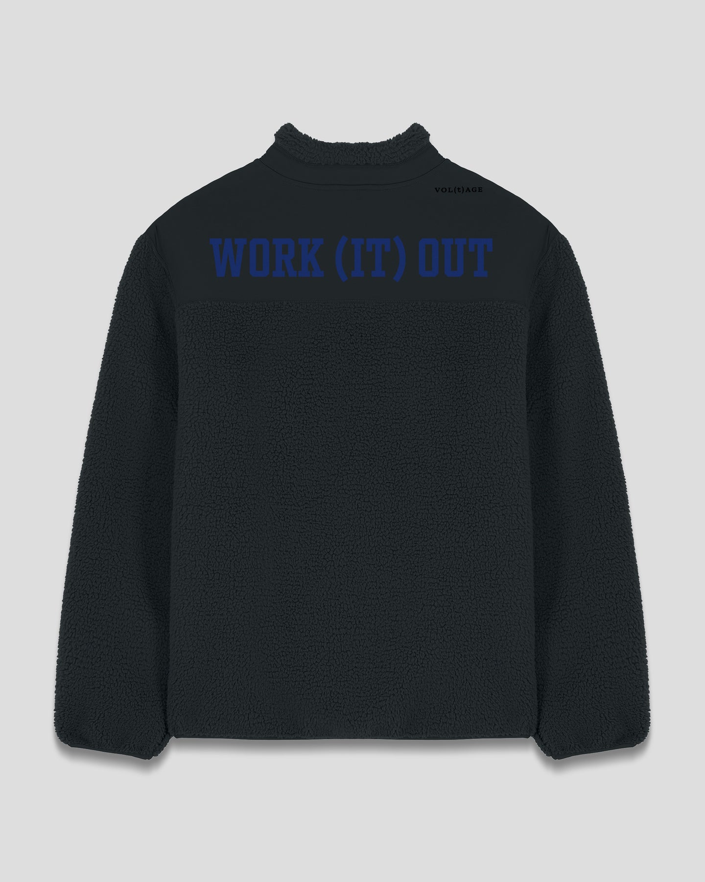The statement WORK (IT) OUT-MISS FIT is printed in electric blue flock.