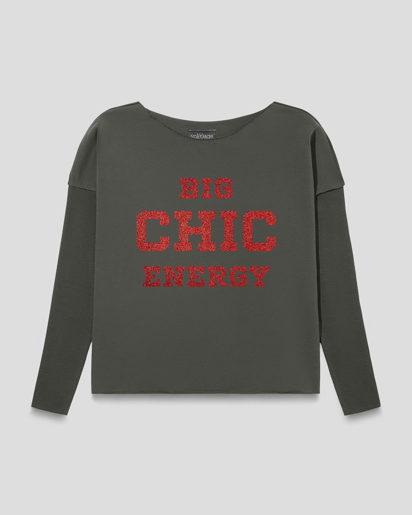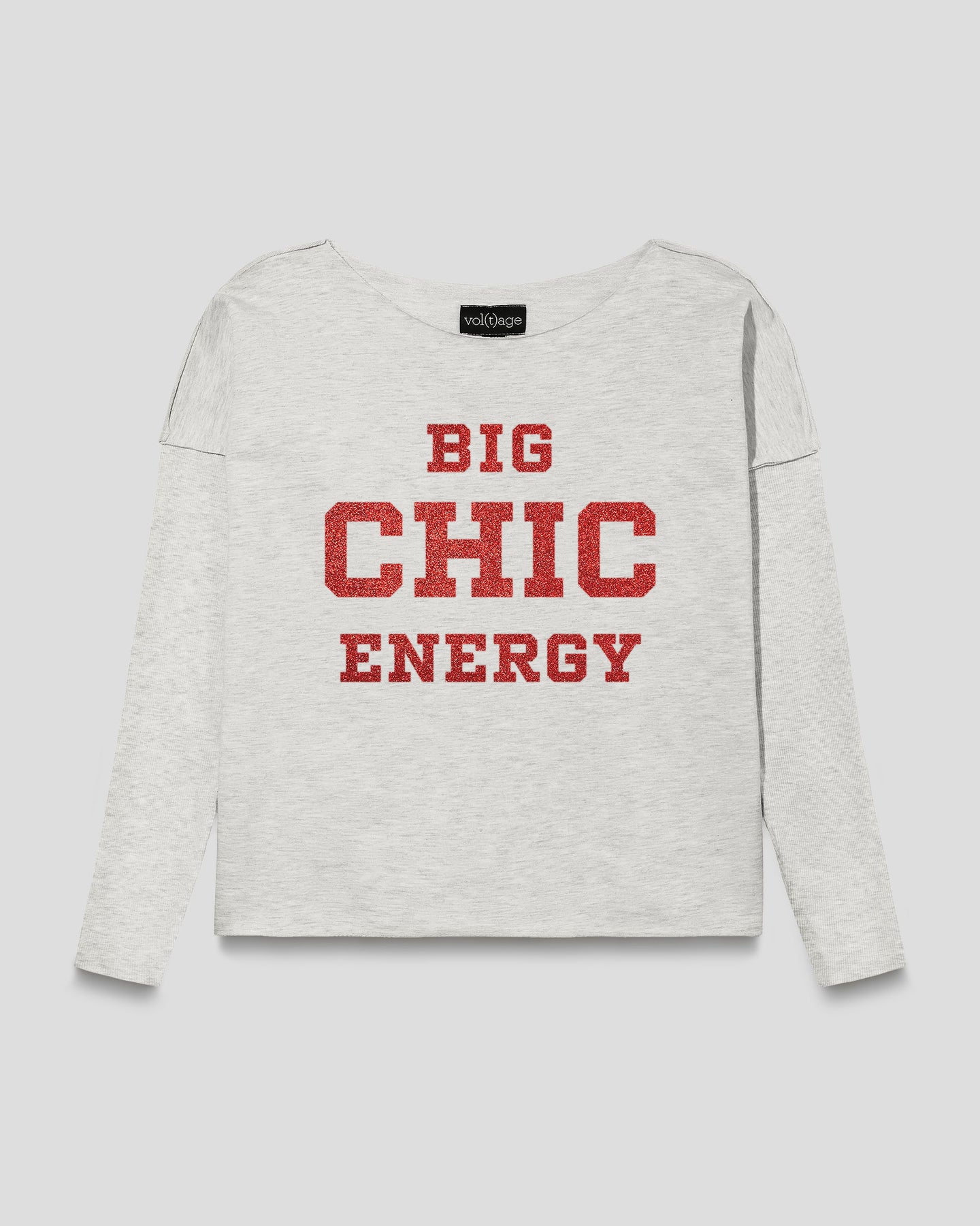 The statement "BIG CHIC ENERGY" is printed in red glitter.